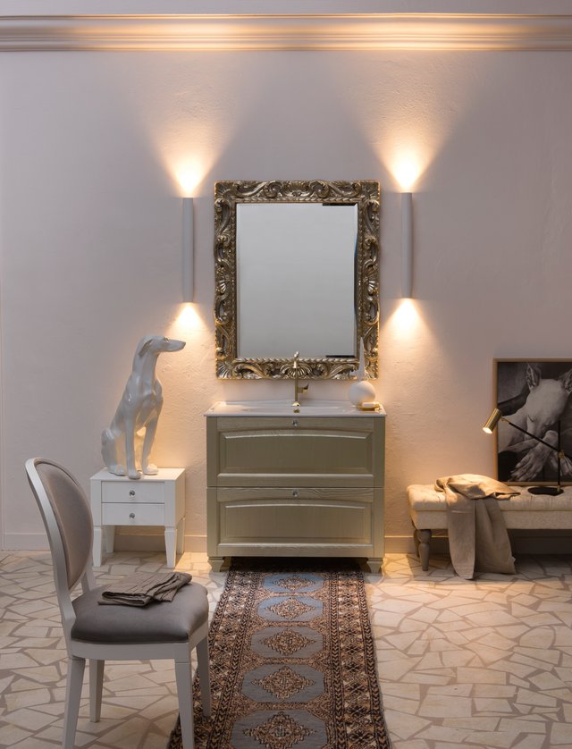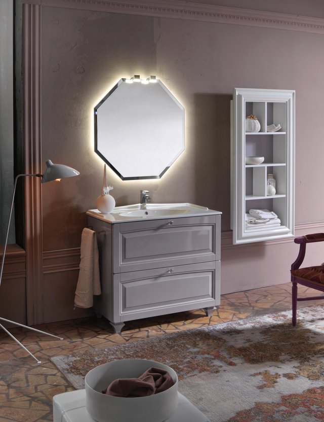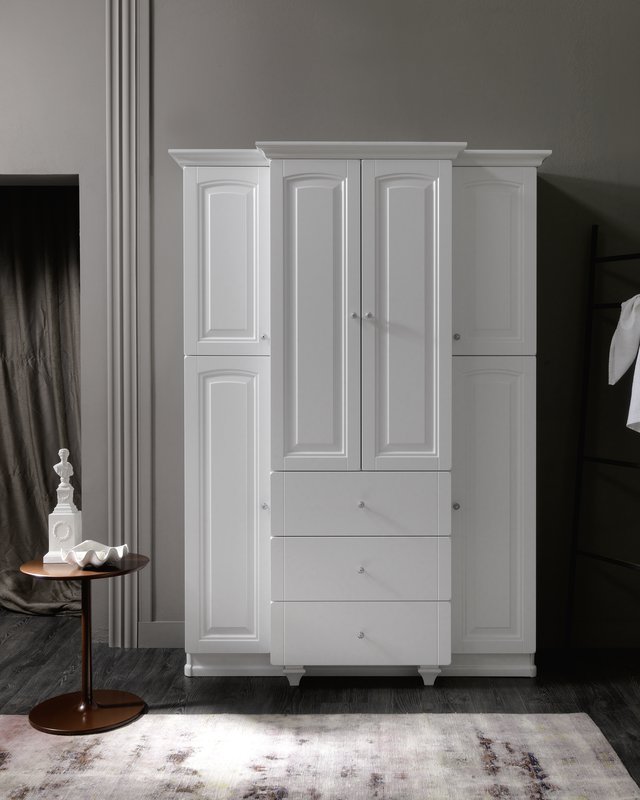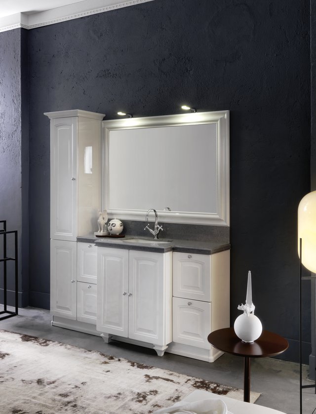 RICONOSCERSI NELLA TRADIZIONE! Non possono mancare elementi decorativi e richiami alla tradizione, in quanto sono i più tipici dello stile classico. Un’anta a telaio con bugna al centro, importante sia nella forma che nei materiali. Disponibile in versione laccata o in legno di frassino.