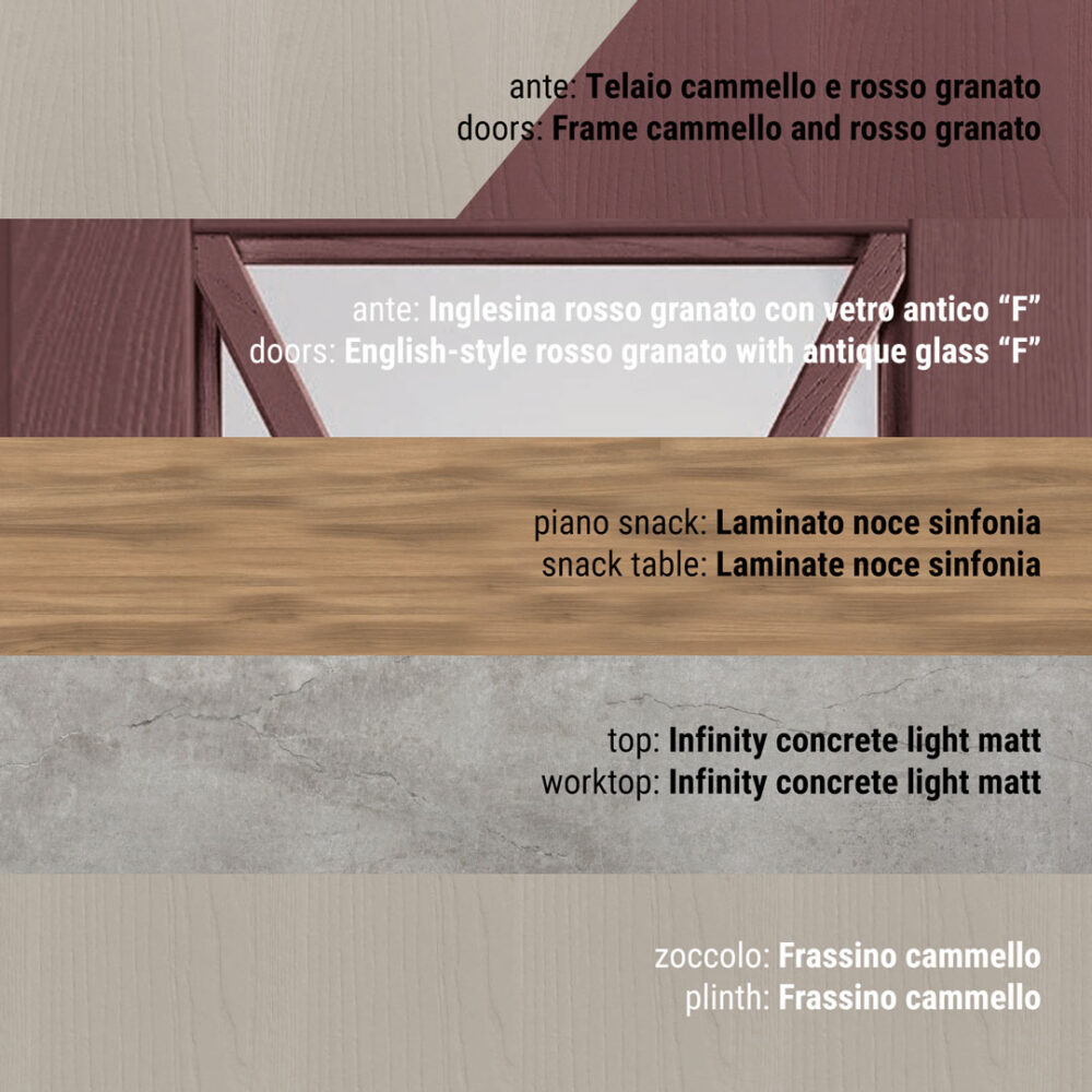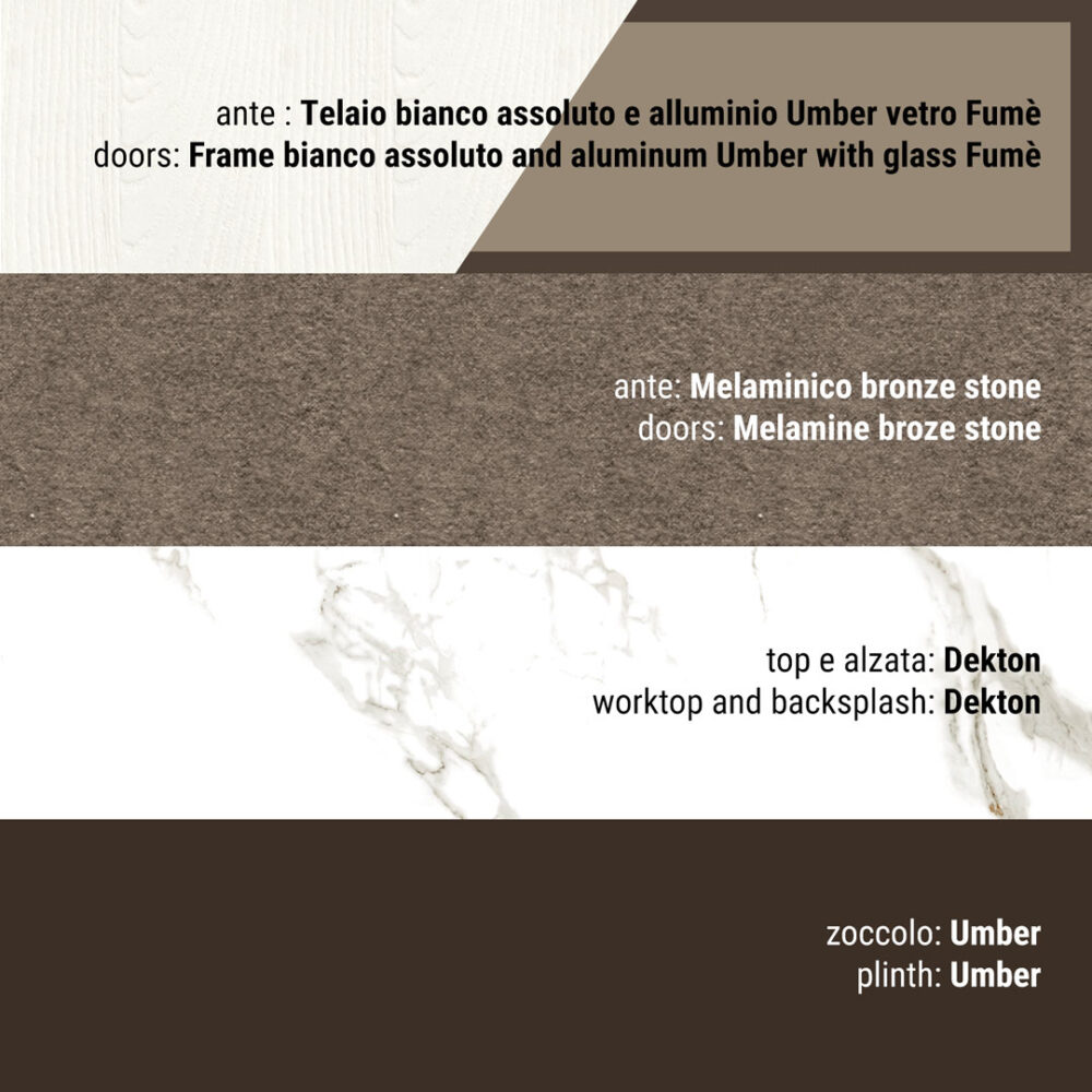 Fasce e basamento: possono essere realizzate in metallo o in pannelli multistrati nobilitati o impiallacciati con tranciato di legno diverso a seconda del modello.