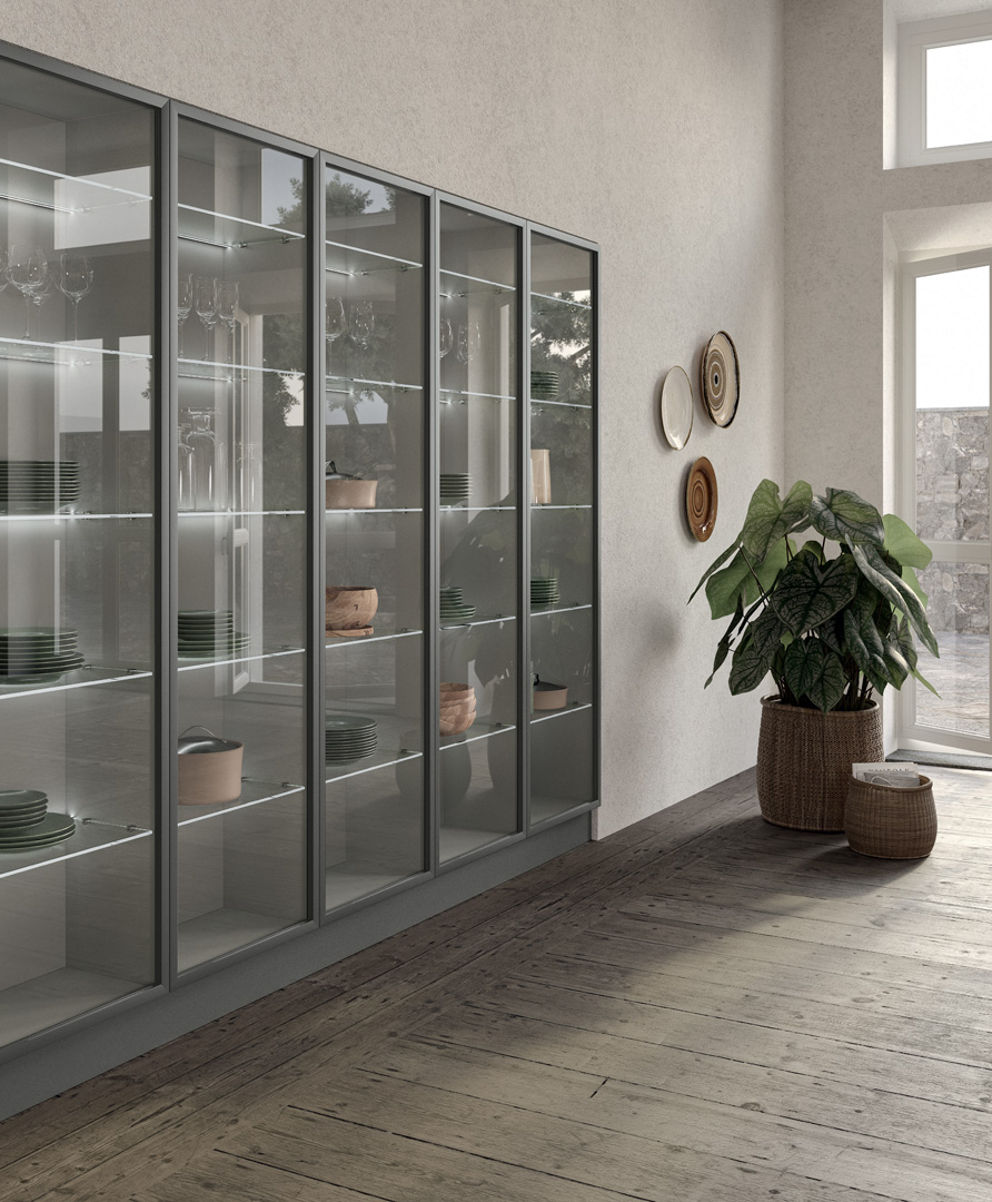 I ripiani sono di spessore 18 mm e sono dotati di reggi ripiano incorporato con dispositivo antisganciamento; essi possono essere anche in vetro temperato (spessore 6 mm) molati sui bordi.