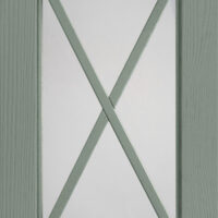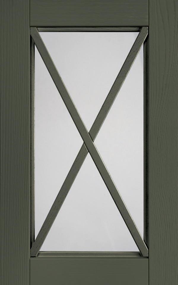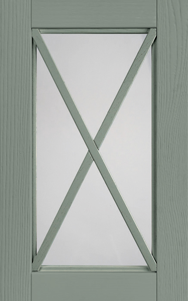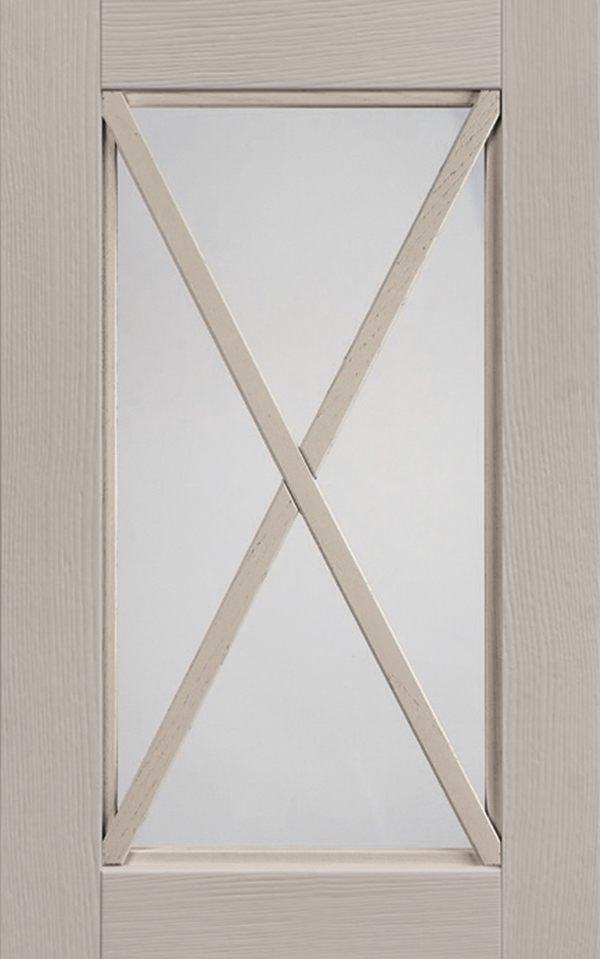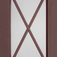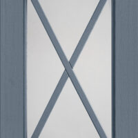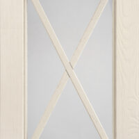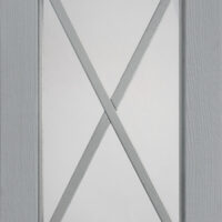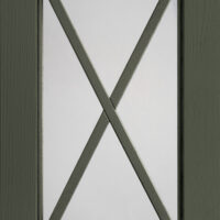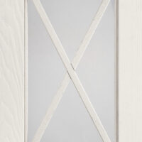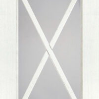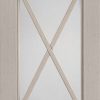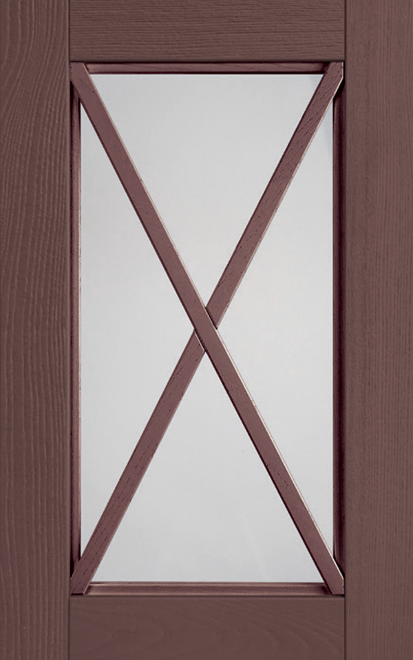 Anta sp.24 mm costituita da un telaio in massello di frassino e bugna in vetro antico “F” con inglesina o in vetro trasparente serigrafato rigatino.