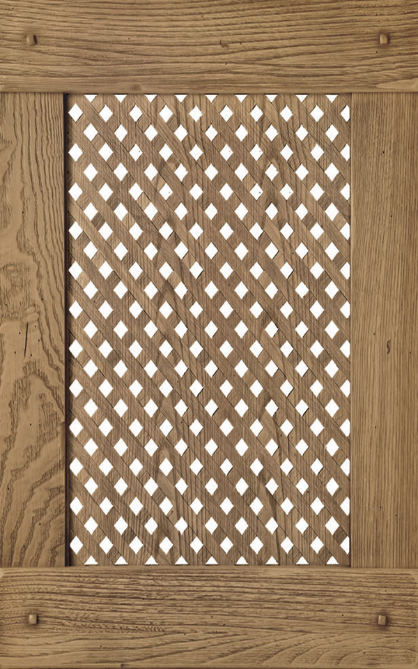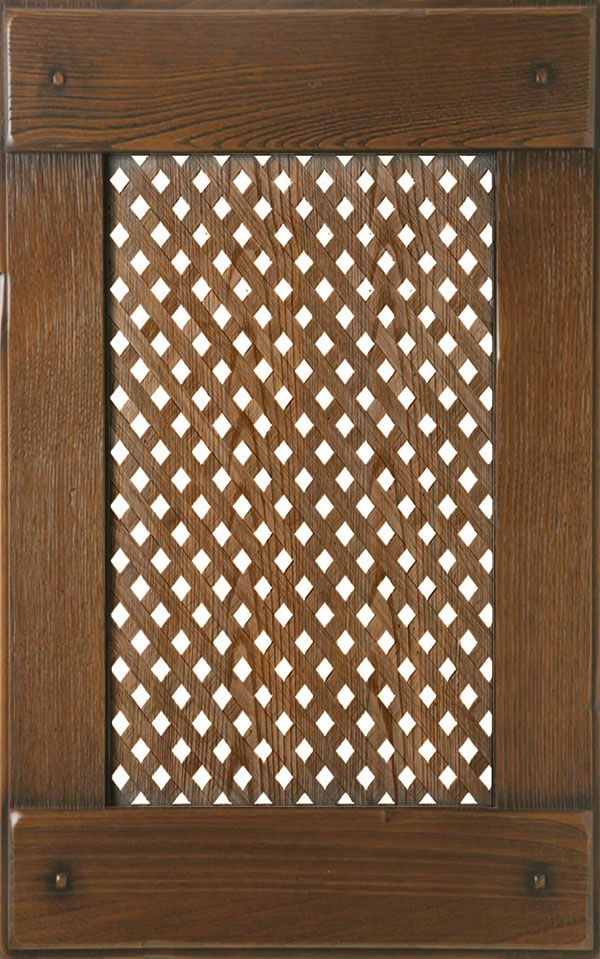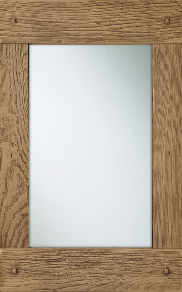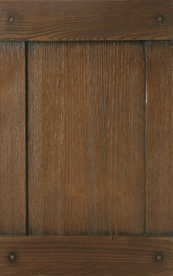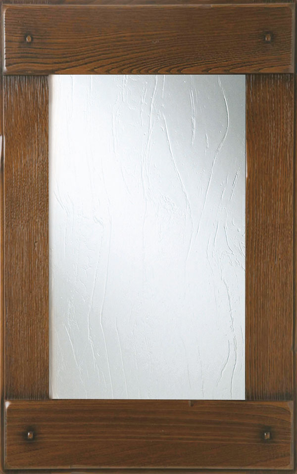 Anta a telaio sp. 32 mm con bugna, tutto in legno massello di castagno. La verniciatura è eseguita con ciclo misto all’acqua (patina) e al solvente, con tinta e finitura trasparente anticata e spazzolata e grado di brillantezza opaco (10 gloss) effetto noce, castagno mielato, bianco o verde antico, castagno gessato.