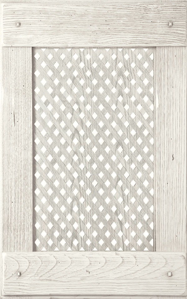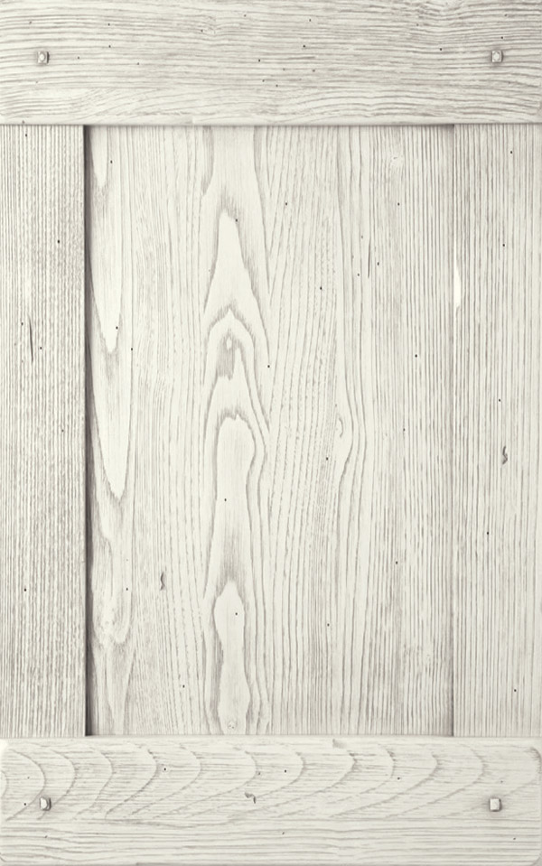 In legno di abete impiallacciata con tranciato di frassino e verniciata con prodotti acrilici / poliuretanici anti ingiallenti.