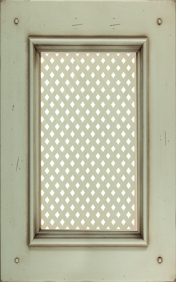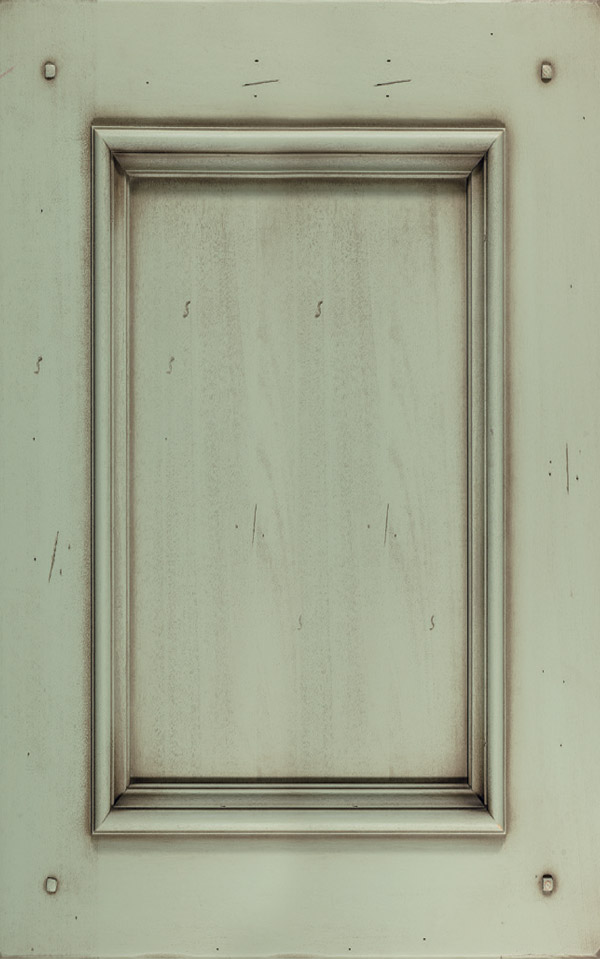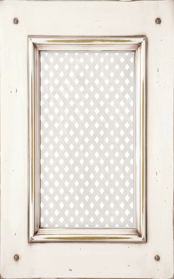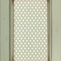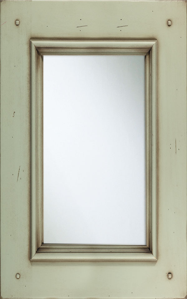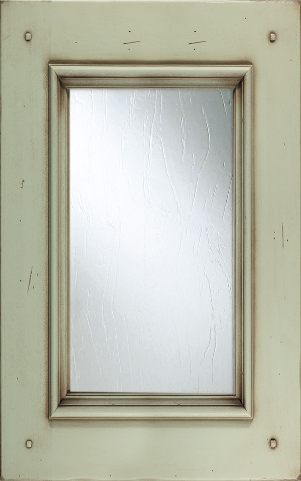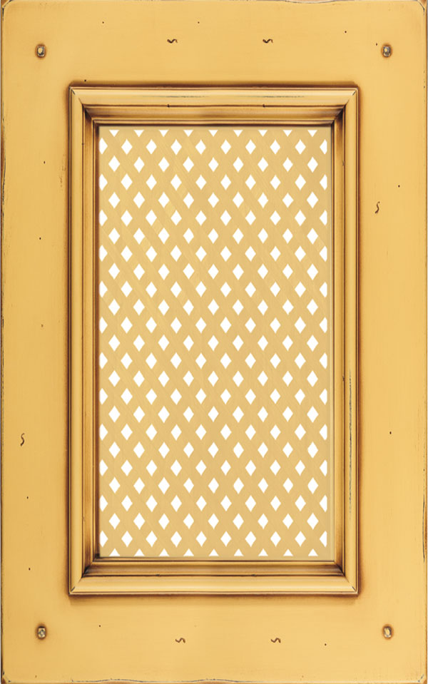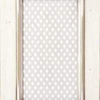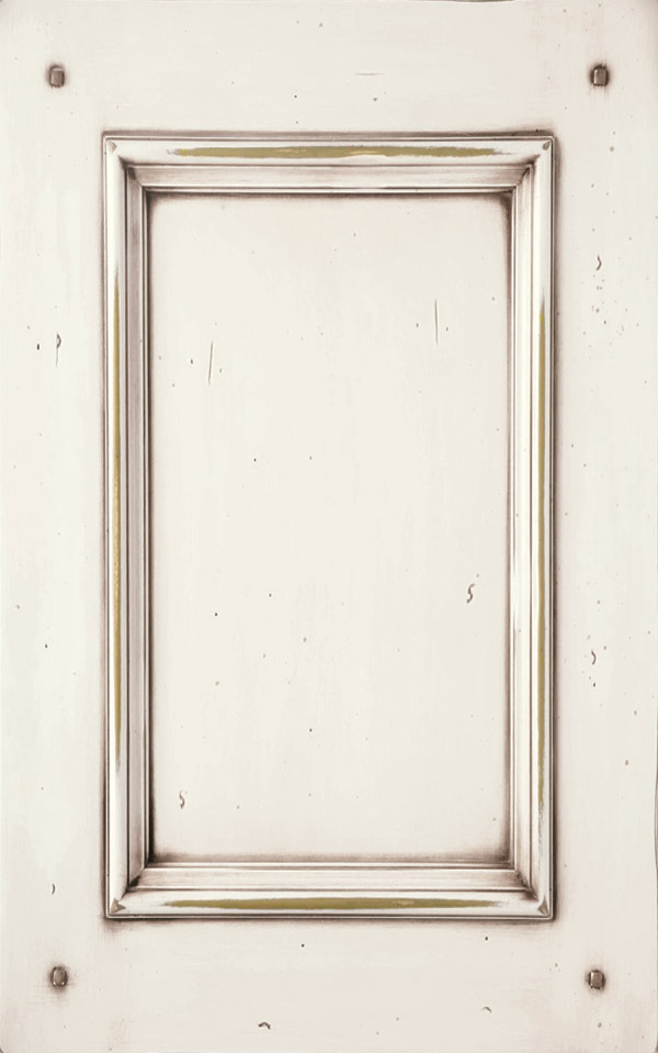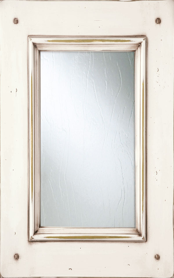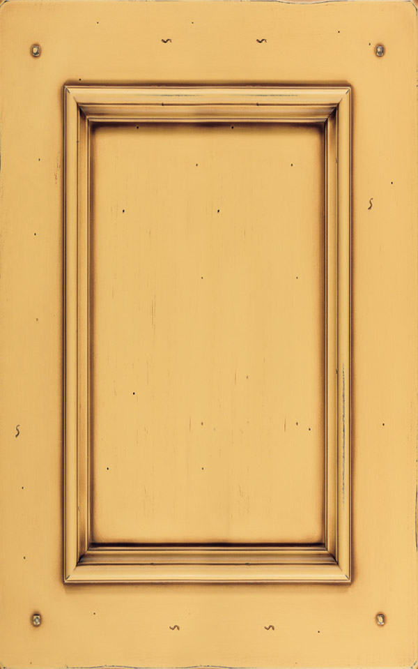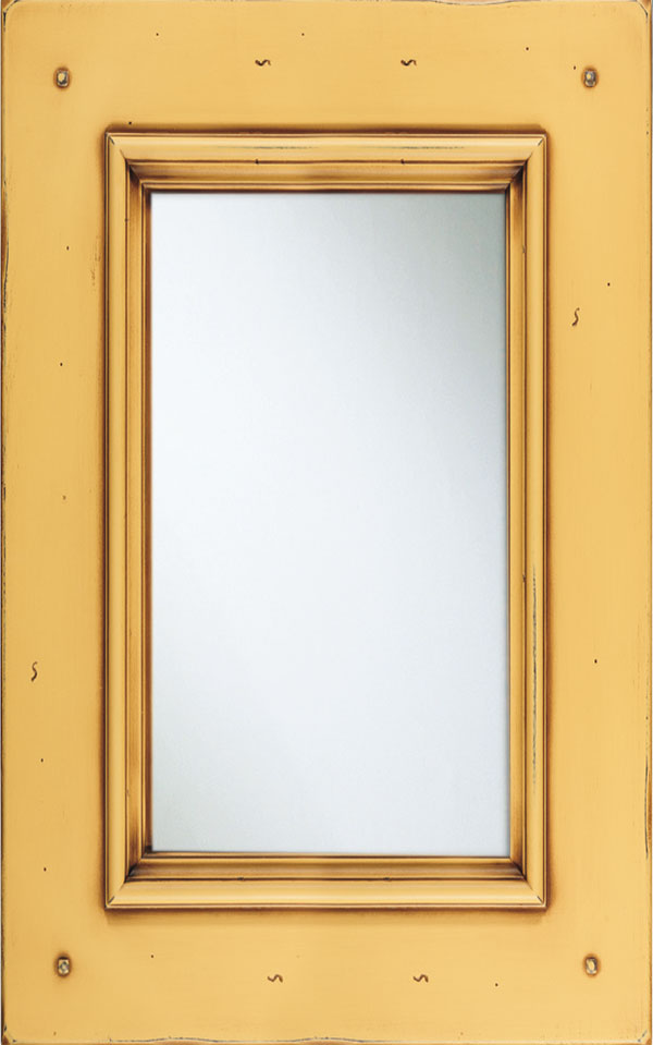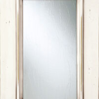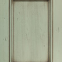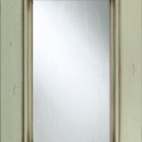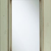 Telaio e bugna in legno massello di Tulipier sp.24 mm. La verniciatura è eseguita con ciclo misto all’acqua (patina) e al solvente con tinta effetto anticato nei colori giallo grano, verde salvia, bianco, argilla con sfumature effetto oro, marrone o avorio e grado di brillantezza semiopaco (20 gloss). L’effetto anticato è dato da un particolare processo che lascia scoperte alcune parti dell’anta.