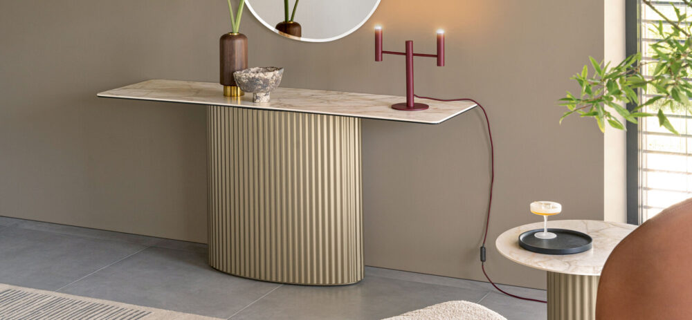 Pensata per completare la collezione Enea e arricchire ogni spazio con la sua presenza discreta ma di grande personalità, la Consolle Enea trasforma l’ingresso o il soggiorno in un ambiente da vivere e ammirare. La base in metallo, con le sue linee scolpite e profonde, crea un gioco di luci e ombre che dona movimento e carattere. Il piano in ceramica, disponibile in numerose varianti, offre infinite possibilità di personalizzazione: ogni scelta diventa un gesto di stile, ogni dettaglio parla di qualità.