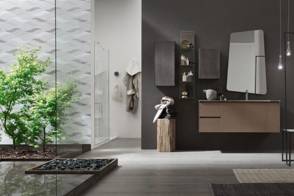 L’arredo bagno va oltre le apparenze e si proietta oltre il design per scoprire la matericità delle finiture. Le venature del rovere naturale, tinto o laccato, la modernità dei colori e i materiali dei top aprono nuovi orizzonti di stile. Lo spessore dei fianchi delle basi e dei pensili emerge sui frontali di ante e cassetti, creando una sorta di cornice che valorizza il mobile da bagno. Tono su tono o a contrasto, l’apertura a gola è pratica e decorativa allo stesso tempo.Collezione Escape