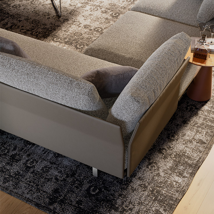 Le linee pulite di Heston riflettono la ricerca di una purezza geometrica, ideale per chi cerca un divano moderno senza rinunciare al comfort . Heston rivoluziona il concetto di bracciolo , un innovativo pannello in struttura metallica, su cui poggia un morbido cuscino da abbinare al bisogno. Perfetto per la casa o per gli spazi contract , Heston combina il suo design funzionale con un look di grande impatto: i cuscini alti dello schienale lo rendono un divano comodo ; la seduta sospesa, disponibile in due diverse altezze, evidenzia le raffinate finiture dei piedini. Heston è un divano modulare che ti permette di creare la configurazione migliore: soluzioni lineari , angolari o freestanding con pouf poggiapiedi , penisole e chaise longue . È la scelta perfetta anche in un centro stanza, per dare personalità al tuo ambiente.