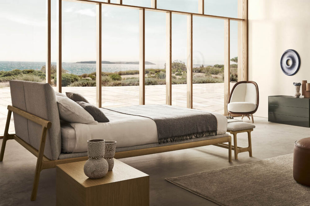 Armonia, equilibrio e leggerezza ispirate alla cultura giapponese. Linee essenziali ed eleganti disegnano un giaciglio dal carattere mite e suggestivo. Il legno massello di frassino o di noce canaletto viene sottoposto ad elaborate lavorazioni. Fresato e tornito artigianalmente, si traduce in superfici completamente lisce e senza spigoli. Imbottiti e foderati sono la testiera ed il pianale d’appoggio del materasso che contiene la rete strutturale, realizzata a doghe multistrato in faggio curvato.