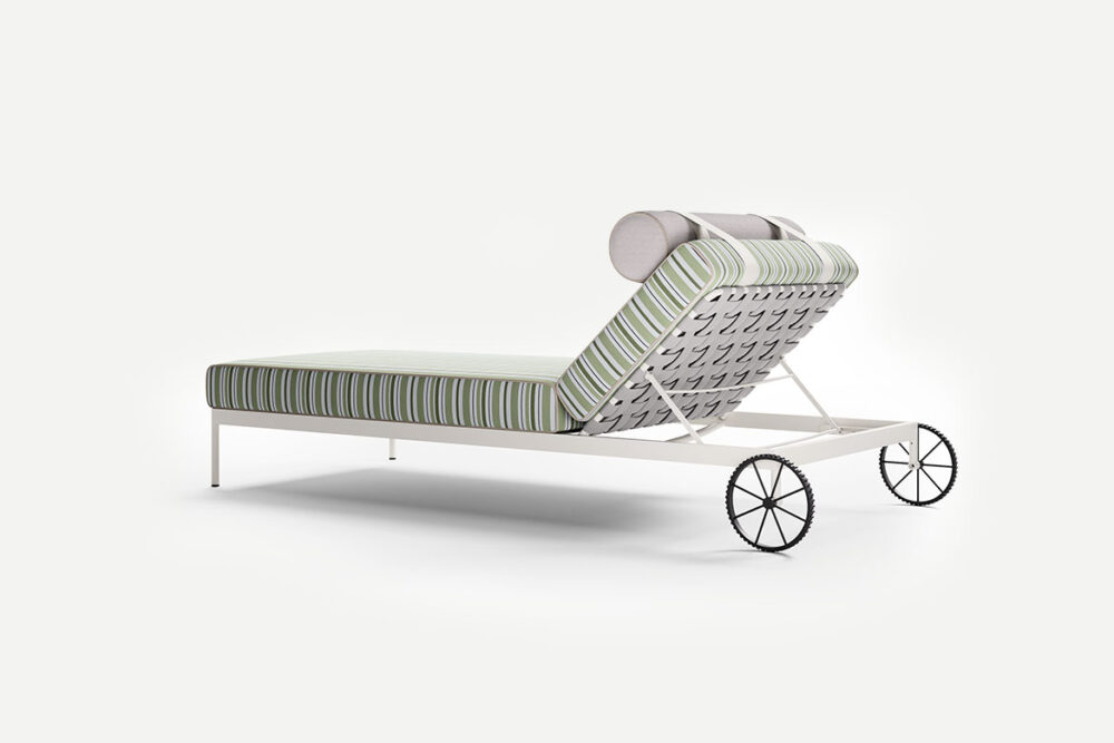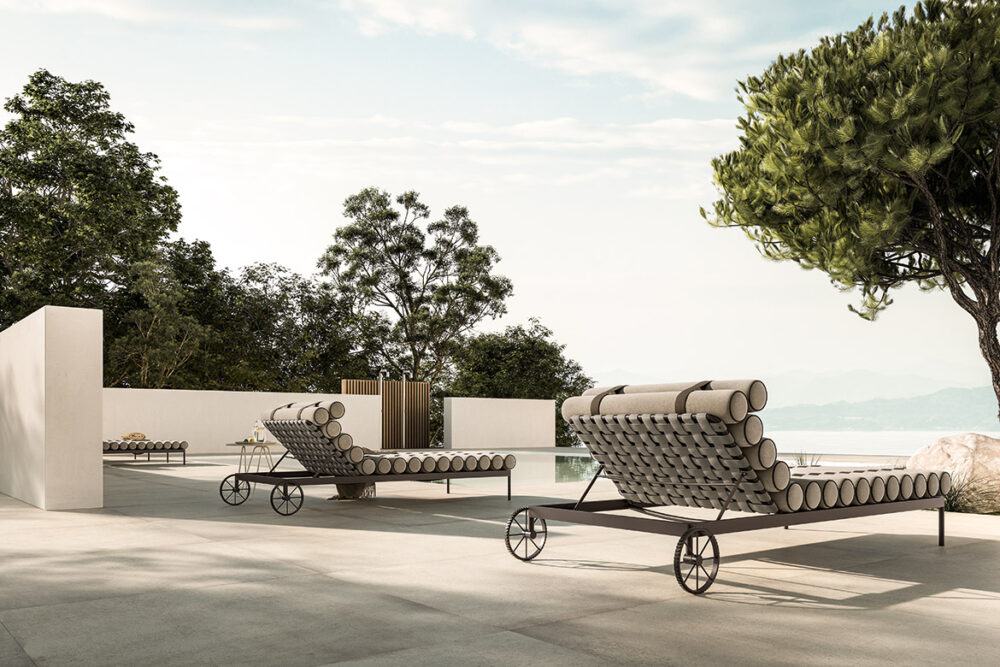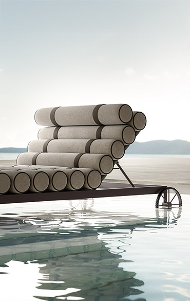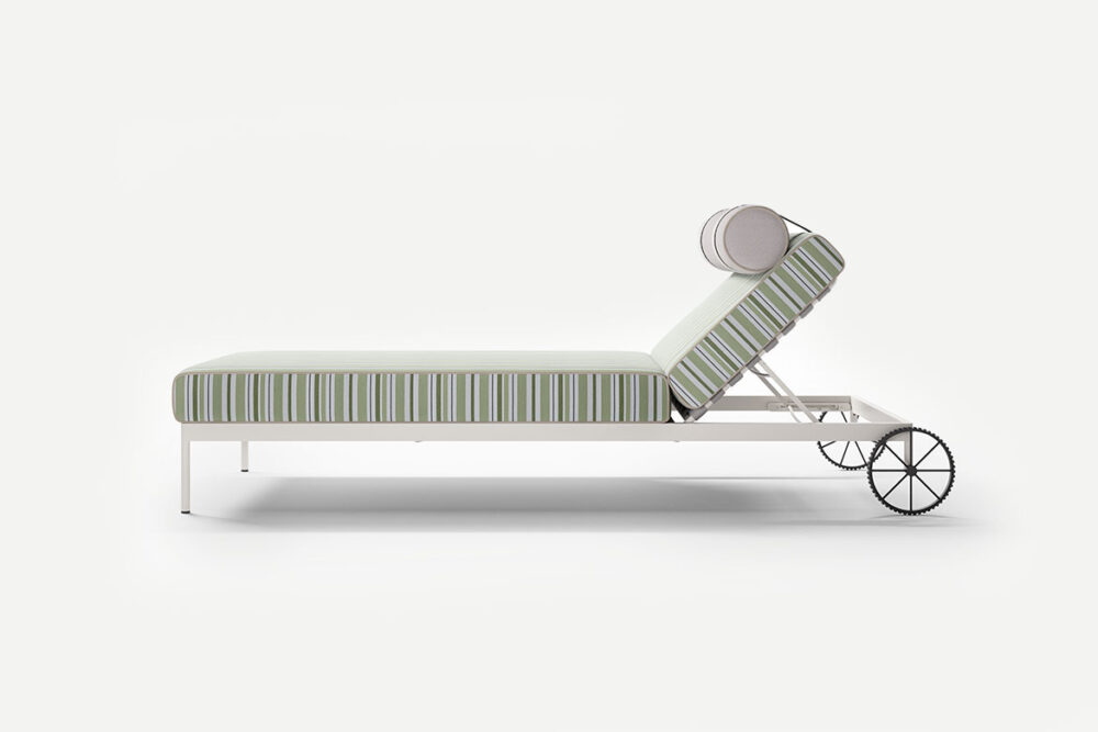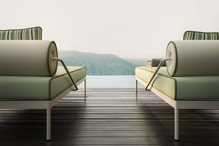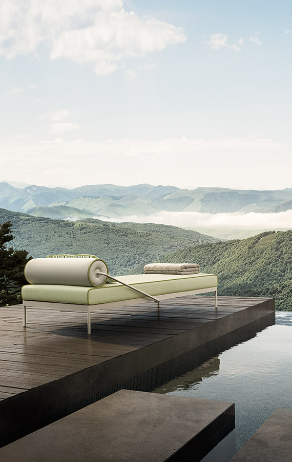 Ampia e poliedrica, perfetta per dar forma a svariate combinazioni, Levante è composta da: divano modulare, lettino reclinabile con ruote, lettino fisso, poltrona, sgabello e sedia, con e senza braccioli. Elementi caratterizzanti sono il piping, che borda il rivestimento in tessuto, interamente sfoderabile, e lo schienale a rullo, appoggio ribaltabile in alcuni casi, da spostare in base alle esigenze. Realizzate in poliuretano specifico per outdoor, le imbottiture interne sono totalmente drenanti, traspiranti e resistenti agli agenti atmosferici. Le strutture tubolari sono in acciaio Inox, disponibili con finitura satinata o nei colori Espresso e Seta. In accordo con i principi dell’economia circolare e della sostenibilità, tutti i pezzi della collezione sono facilmente disassemblabili.