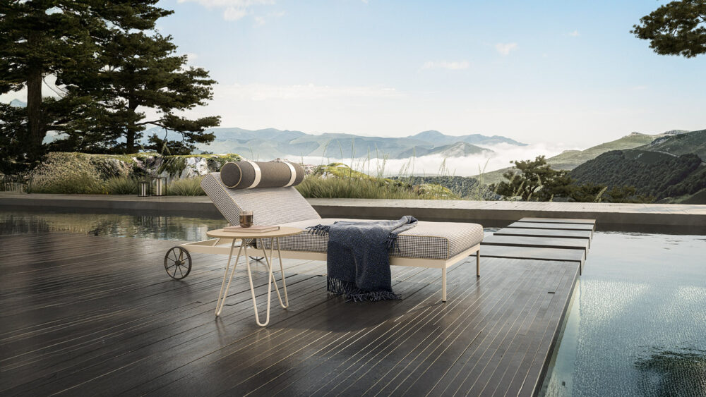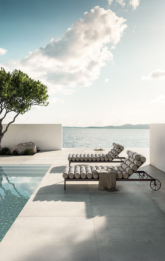 Ampia e poliedrica, perfetta per dar forma a svariate combinazioni, Levante è composta da: divano modulare, lettino reclinabile con ruote, lettino fisso, poltrona, sgabello e sedia, con e senza braccioli. Elementi caratterizzanti sono il piping, che borda il rivestimento in tessuto, interamente sfoderabile, e lo schienale a rullo, appoggio ribaltabile in alcuni casi, da spostare in base alle esigenze. Realizzate in poliuretano specifico per outdoor, le imbottiture interne sono totalmente drenanti, traspiranti e resistenti agli agenti atmosferici. Le strutture tubolari sono in acciaio Inox, disponibili con finitura satinata o nei colori Espresso e Seta. In accordo con i principi dell’economia circolare e della sostenibilità, tutti i pezzi della collezione sono facilmente disassemblabili.