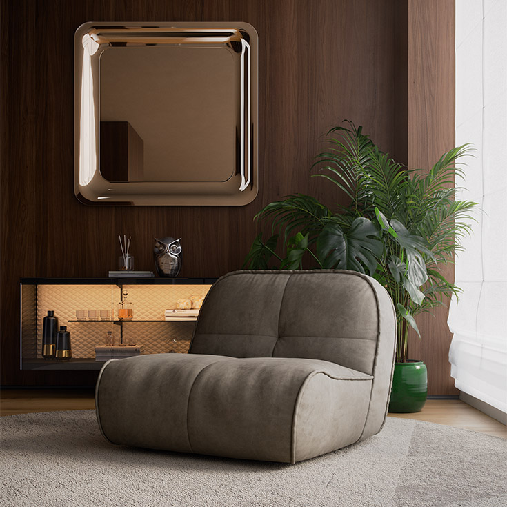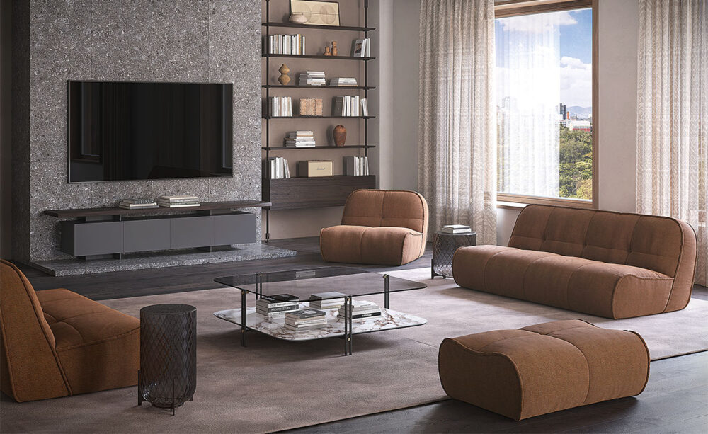 Il divano di design Spencer reinterpreta lo stile iconico degli anni ’70 in chiave moderna. L’eleganza rétro fa di Spencer un divano vintage , nonché un classico senza tempo perfetto per il tuo soggiorno moderno . La sua silhouette curvilinea e l’imbottitura avvolgente offrono il giusto equilibrio tra estetica e comodità, rendendolo ideale per la tua casa o per uno spazio contract . Il segreto del suo comfort è la seduta bassa e informale: i piedini, quasi invisibili, lo fanno sembrare a contatto con il pavimento, creando un’esperienza di relax unica, perfetta per condividere momenti conviviali con i tuoi ospiti. Spencer è disponibile come divano 3 posti o 2 posti all-in-one, e puoi completarlo con elementi freestanding come la poltrona della stessa gamma o il pouf ottomano poggiapiedi o da seduta. Ogni dettaglio è studiato con cura: le cuciture valorizzano la morbidezza della pelle, mentre l’ampia selezione di tessuti ti permette di personalizzarlo secondo i tuoi gusti. I volumi pieni e compatti sono ritmati da una trapuntatura ispirata alla lavorazione capitonné, che crea morbidi panneggi offrendoti una seduta comoda ed ergonomica.