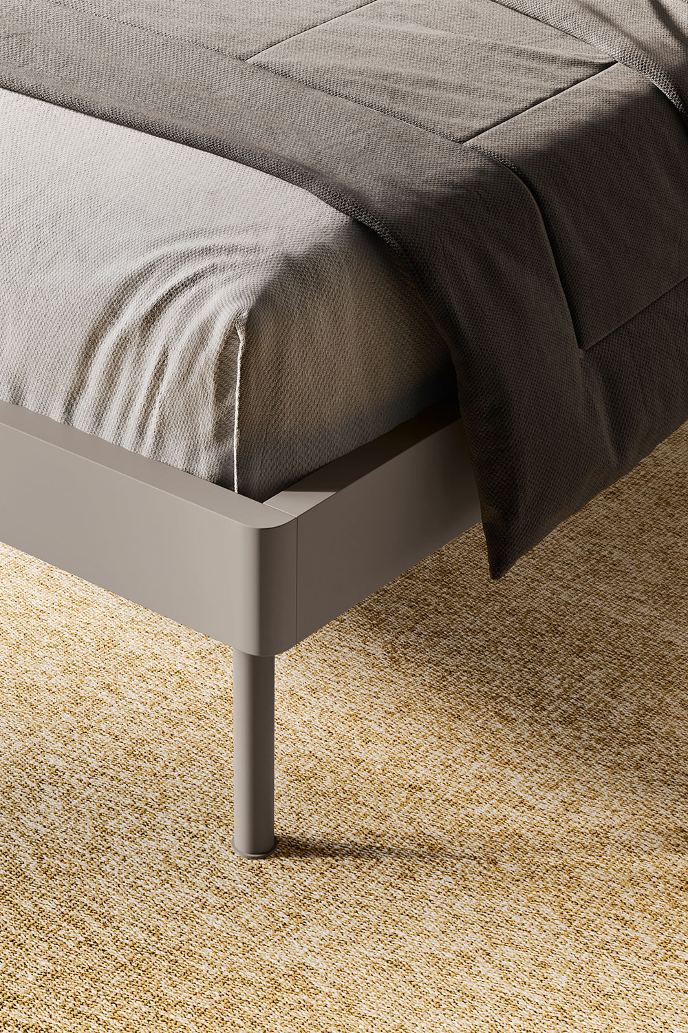 Completa del necessario per dormire, riposare, studiare, lavorare, contenere, vestirsi, la composizione è idealmente suddivisa in tre aree funzionali. La zona notte vede come protagonista Sipario, un letto con testiera imbottita che, a seconda dei modelli, si declina nelle varianti con alette laterali spostabili, con trapuntatura o con tasca contenitore integrata. Proposto in versione singola, il letto è disponibile anche nel modello a una piazza e mezza per soddisfare esigenze di comfort diverse.