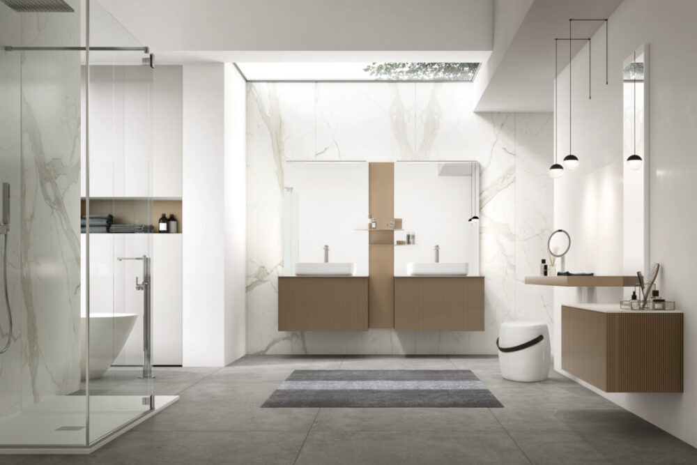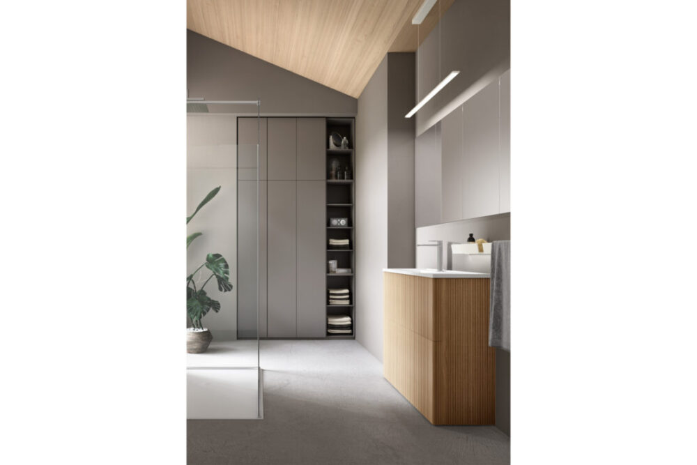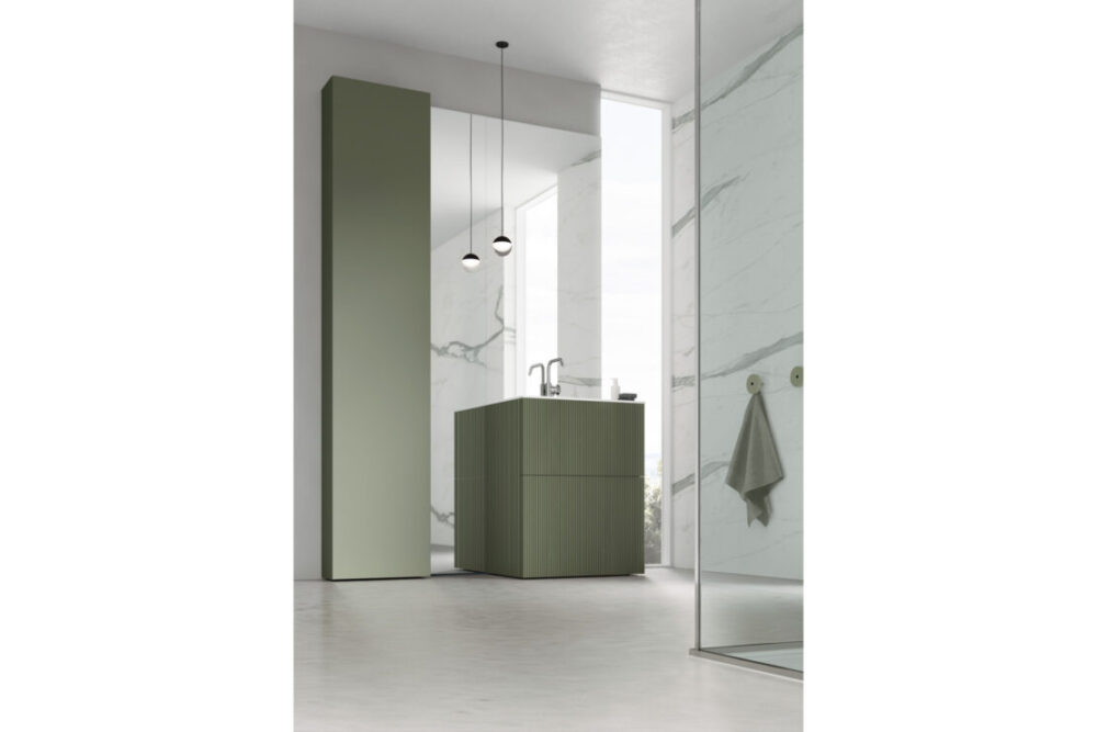Le soluzioni monoblocco Wind arredano il bagno con un perfetto connubio di funzionalità ed estetica. I mobili bagno della collezione si caratterizzano per il particolare design del cassetto, che abbraccia la scocca offrendo una pratica presa maniglia laterale per l’apertura.